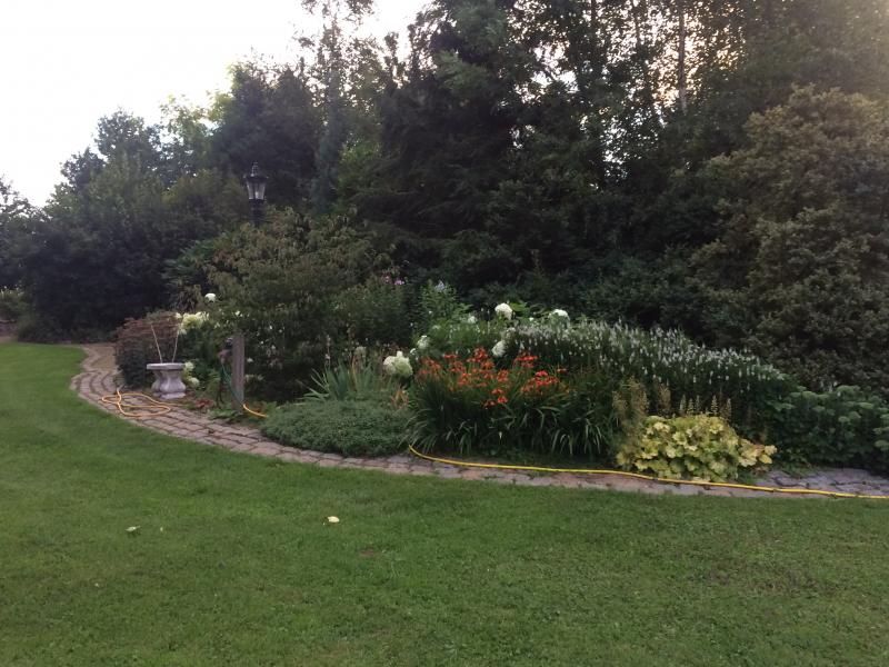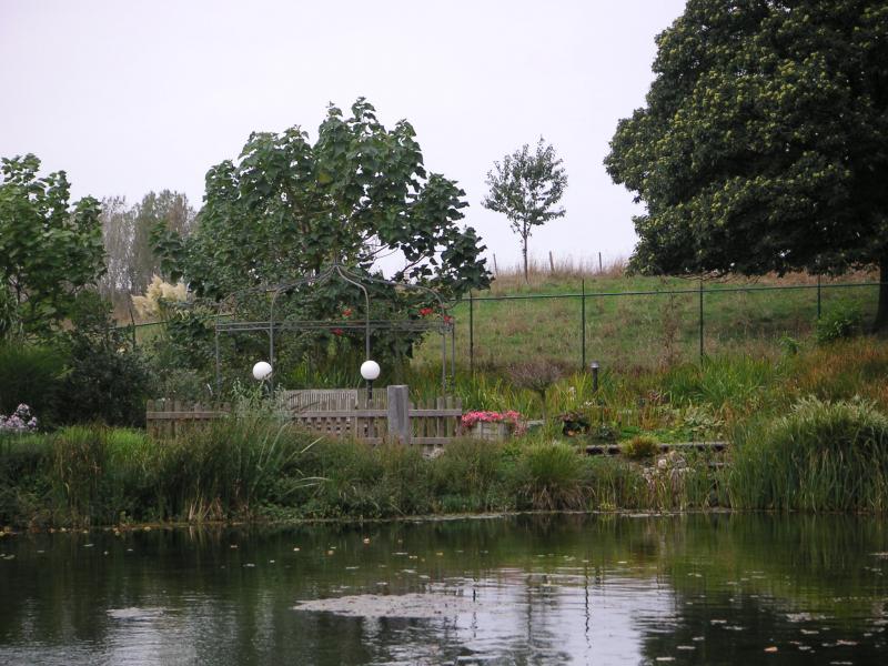 een van onze 3 vijvers opweg naar de rozentuin